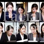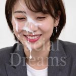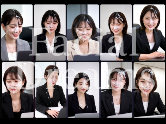 顔にたっぷりのザーメンをつけたまま、デスクワークをこなすOLたち。