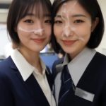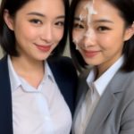 AIによって生成された、洗練されたスーツ姿の女性たちがペアで登場し、