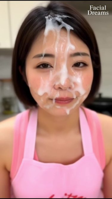 エプロン姿のザーメン顔 顔に大量のザーメンをつけたエプロン姿の女性 #013