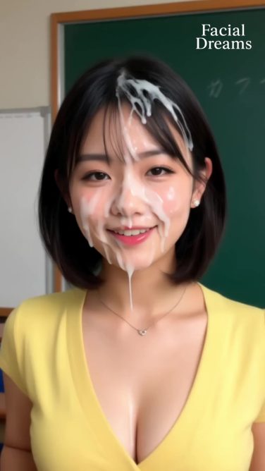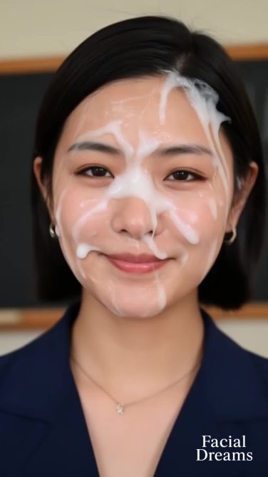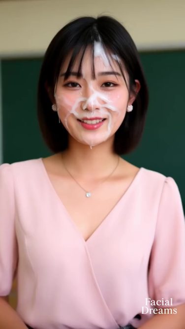 女教師のザーメン顔 顔射されてザーメンを顔いっぱいにつけたまま黒板の前に立つ美人女教師の映像 #015