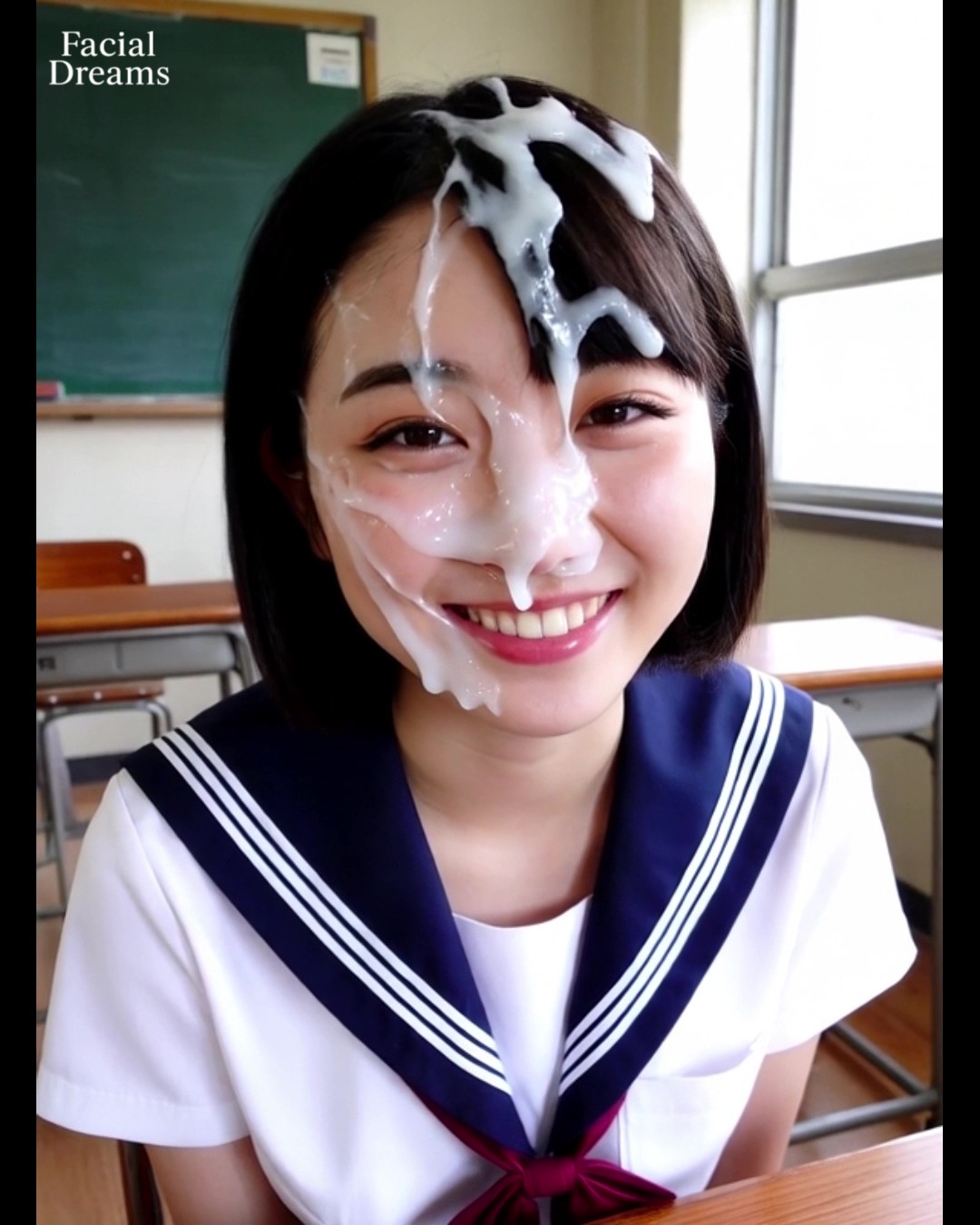 顔に射精された制服姿のJKが見せる笑顔のショート動画 #014